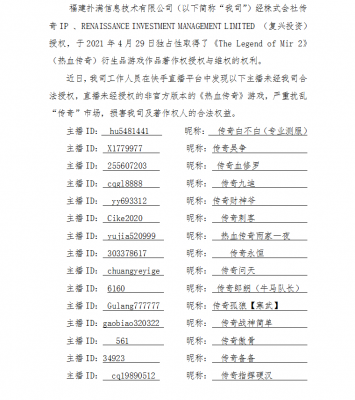 202106-07星空·综合体育信息技术有限公司(以下简称“我司”)于2021年4月取得《传奇》游戏在中国大陆地区的独占性授权。自被授权以来,我司一直积极响应国家知识产权保护政策,始终...