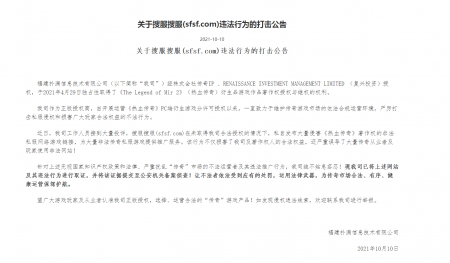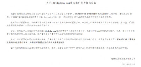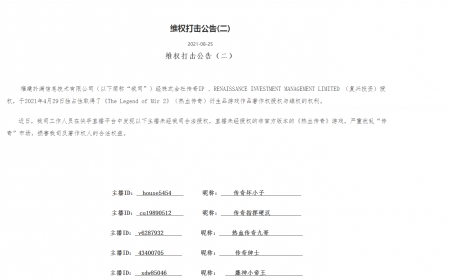 202108-25维权打击公告 星空·综合体育信息技术有限公司(以下简称“我司”)经株式会社传奇IP 、RENAISSANCE INVESTMENT MANAGEMENT L...